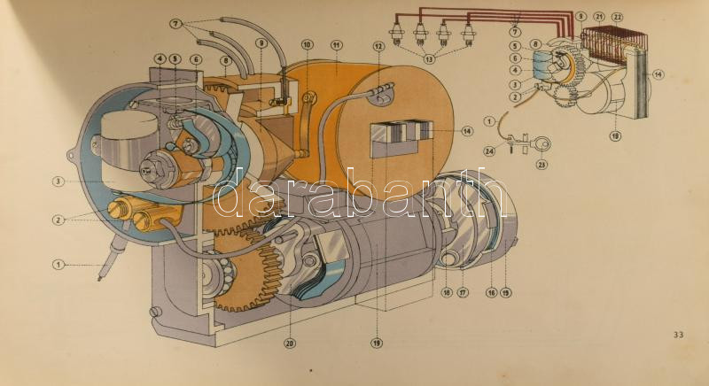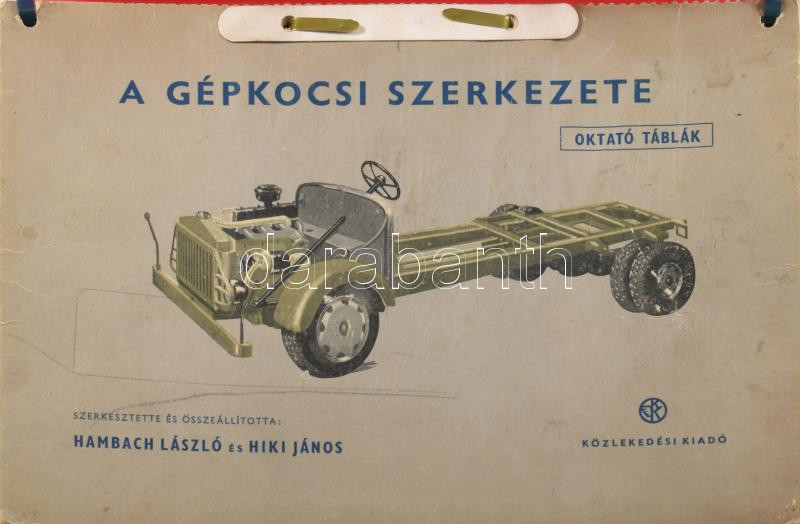 Hambach László-Hiki János(szerk.): A gépkocsi szerkezete (oktató táblák). Bp., 1953, Közlekedési Kiadó. Kiadói papírkötés, eredeti spirálozás helyett mappába fűzve.