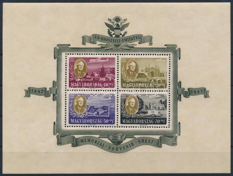 Beschreibung: 1947 Rendkívül jó minőségű Roosevelt légiposta blokk (30.000)