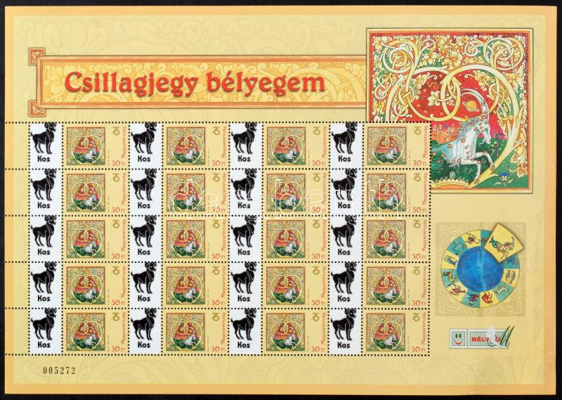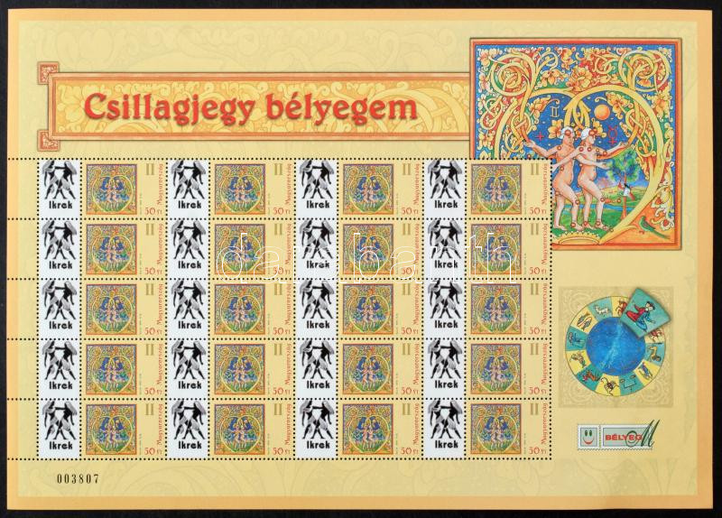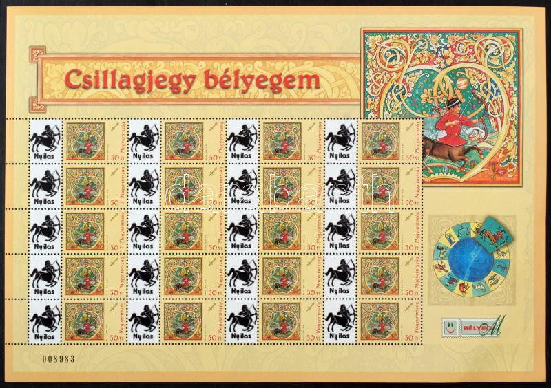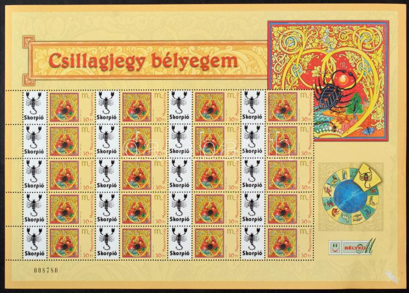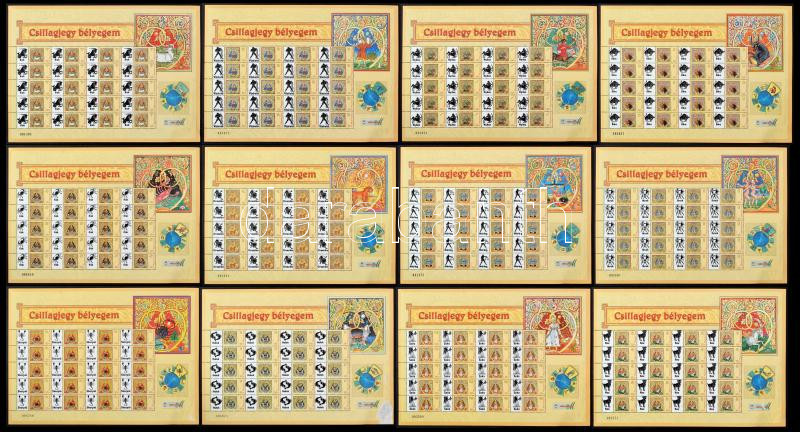 2005 Csillagjegy bélyegem 12 klf megszemélyesített teljes ív (175.000) (az ívszéleken beázás, összeragadás nyomai, 3 íven előoldali sérülések /12 different complete sheets : wet damage, gum disturbance on margins, demage on the front side of 3 sheets) (a bélyegek hibátlanok, ezek értéke / the stamps are faultless, cat. value 112.000)