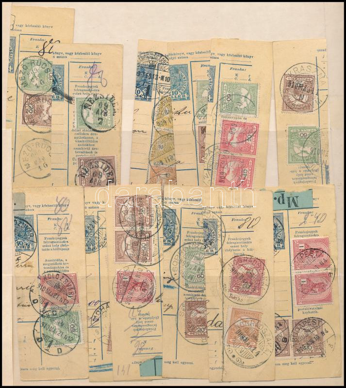 Beschreibung: 12 db csomagszállító szelvény szép / olvasható bélyegzésekkel