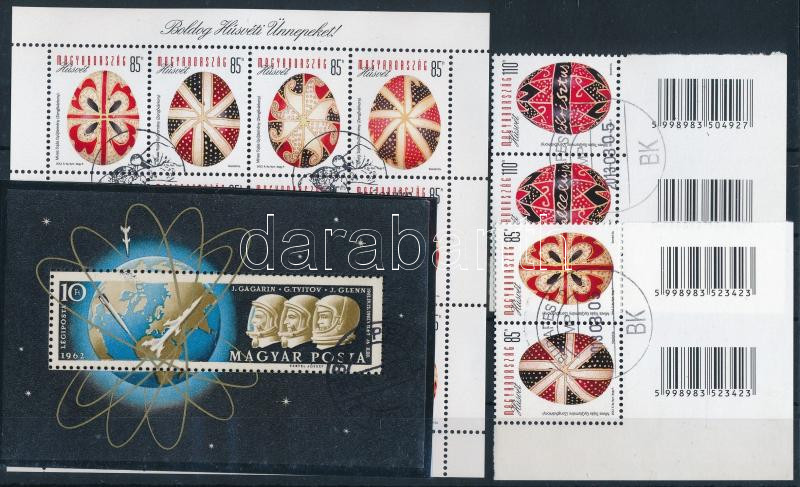 Beschreibung: 1962-2013 Ikarusztól az űrrakétáig blokk + Húsvét blokk és Húsvét sor ívszéli vonalkódokkal