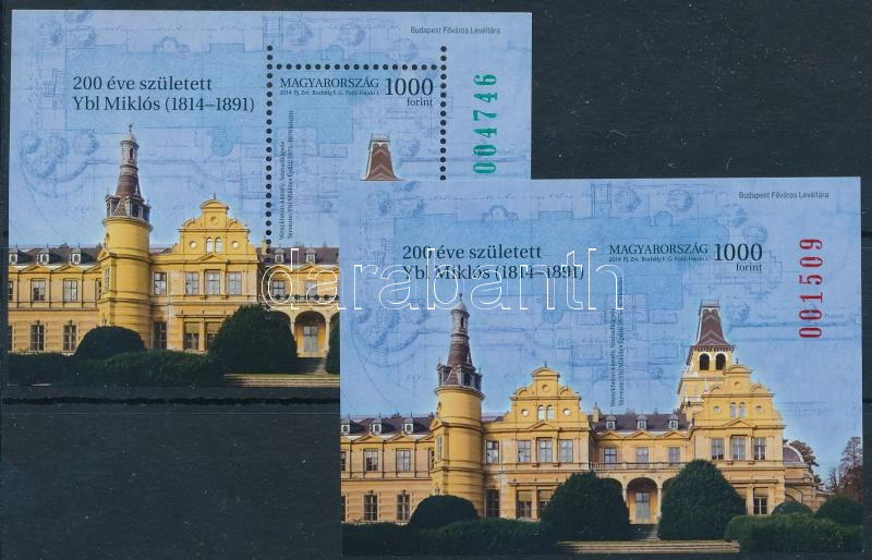 Beschreibung: 2014 Ybl Miklós túlfogazott + vágott blokk zöld és piros sorszámmal (31.000)