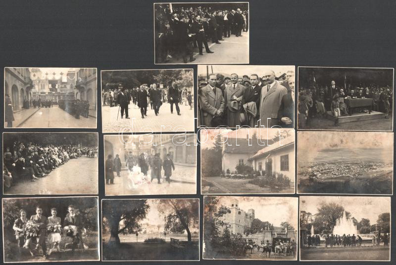 Beschreibung: ca 1938 13 db fénykép, egyiken Gömbös Gyula miniszterelnök. Vegyes állapotban 6x8 cm