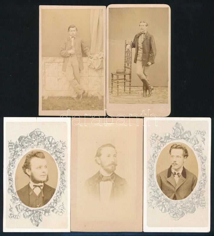 Beschreibung: cca 1865 5 db keményhátú fotó Tiefbrunner és Rupprecht Mihály műterméből, jelzés nélkül, 10,5×6,5 cm