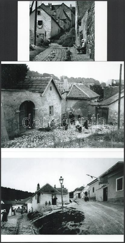 Beschreibung: cca 1929 előtt készült felvételek a Tabánról, 3 db modern nagyítás, jelzés nélkül, 15x21 cm és 10x15 cm