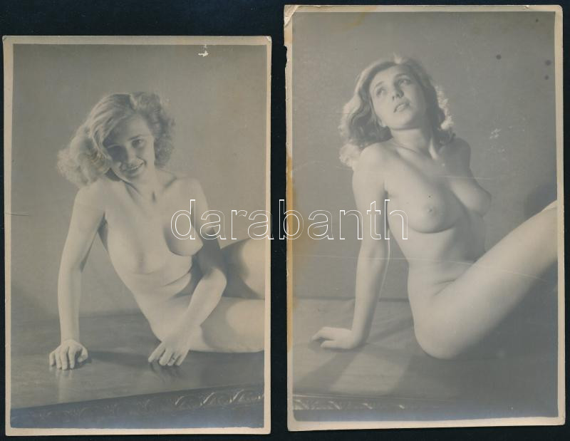 cca 1940 Akt felvételek egy hölgyről, 2 db fotó, jelzés nélkül, kis hi... https://www.darabanth.com/de/510-Fernauktion/510.0/Fotografie/Foto~807/cca-1940-Akt-felvetelek-egy-holgyrol-2-db-foto-jelzes-nelkul-kis-hibakkal-14x9-cm-koru~II3451253