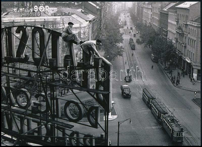 cca 1950 Budapest, Oktogon, a neon reklámok karbantartása, 1 db modern... https://www.darabanth.com/de/510-Fernauktion/510.0/Fotografie/Foto~807/cca-1950-Budapest-Oktogon-a-neon-reklamok-karbantartasa-1-db-modern-nagyitas-jelzes-nelku~II3444522