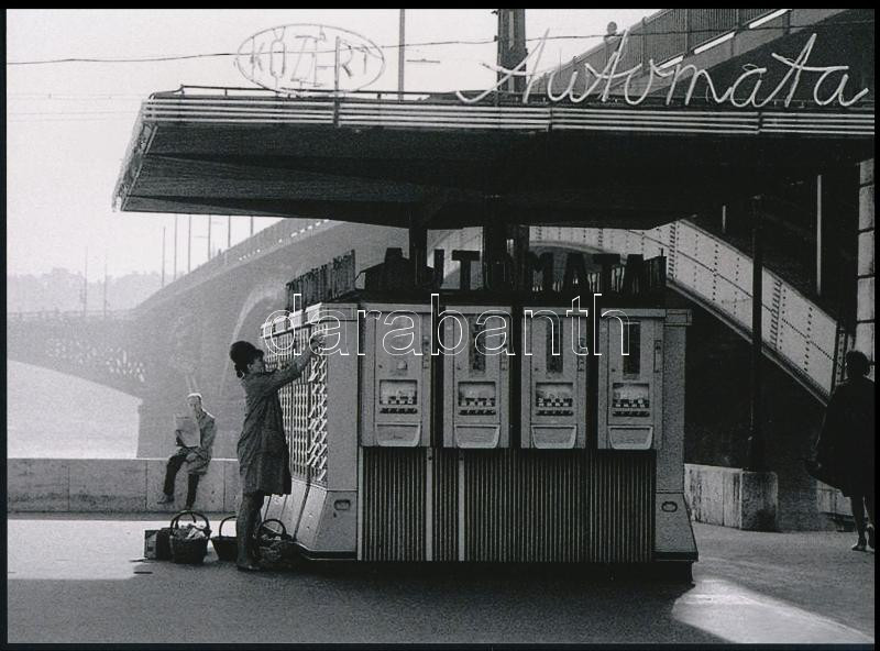 Beschreibung: cca 1965 Budapest, KÖZÉRT automata a Margit hídnál, 1 db modern nagyítás, jelzés nélkül, 15x21 cm