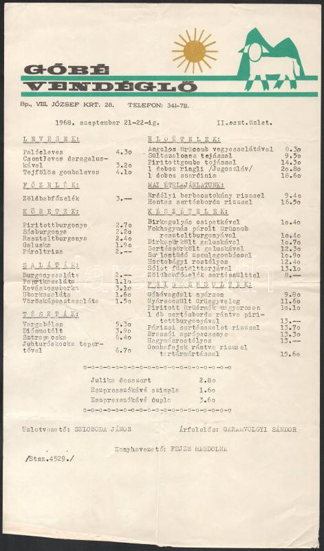 cca 1960-1970 Budapesti éttermek étlapjai: Góbé, Kárpátia, Wagner, Ott... https://www.darabanth.com/de/510-Fernauktion/510.0/Fotografie/Werbungen~808/cca-1960-1970-Budapesti-ettermek-etlapjai-Gobe-Karpatia-Wagner-Otthon-Oreghalasz-5-db~II3452516