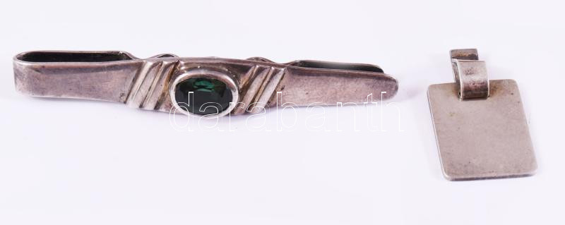 Beschreibung: Ezüst (Ag) nyakkendőtű és függő, közte jelzett, bruttó 9,.8g