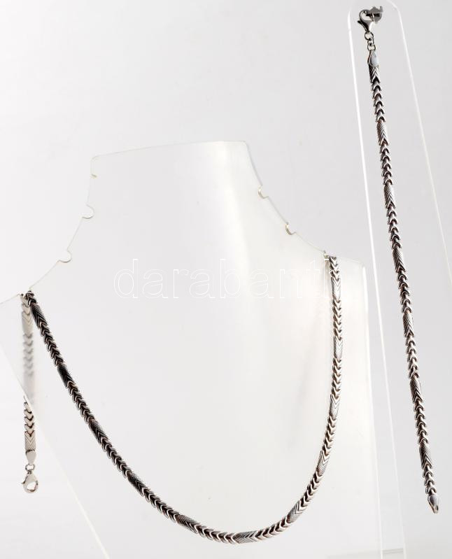 Beschreibung: Ezüst(Ag) fantáziaszemes nyaklánc és karkötő, jelzett, h: 19,5 és 45 cm, nettó: 14,2 g