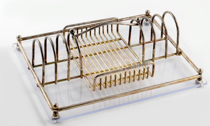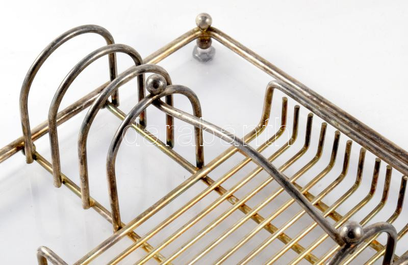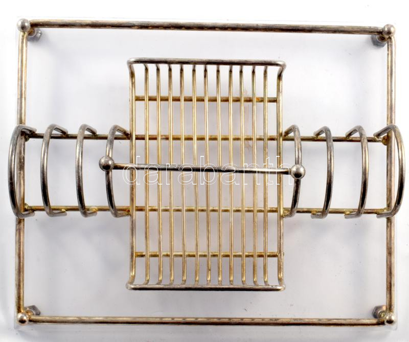 Beschreibung: Ezüstözött art deco pirítós szervírozó. Alsó lapja rezin, kopással, 27x22 cm