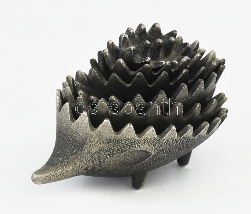 Beschreibung: Walter Bosse jellegű, sündisznó formájú design fém tálkák, 6 db. Jelzés nélkül, elszíneződésekkel, h: 4-12 cm