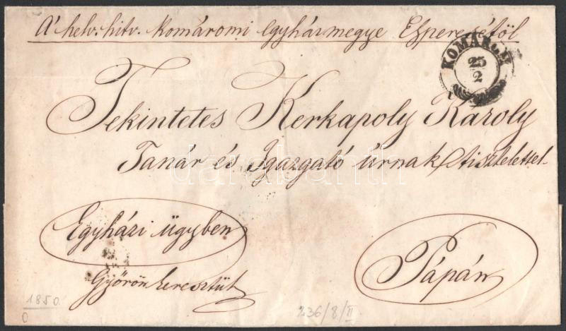 1850 Komárom, hivatalos levél borítékja, a komáromi egyházmegye espere... https://www.darabanth.com/de/510-Fernauktion/510.0/Kunst-Dokumente-andere-Sammelgebiete/Dokument~803/1850-Komarom-hivatalos-level-boritekja-a-komaromi-egyhazmegye-esperesenek-szep-viaszpecsC3~II3453317