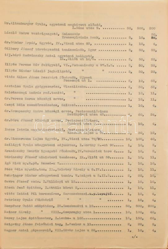 Beschreibung: 1929 Bajcsy-Zsilinszky Endre Előőrs című lapjának részvényjegyzési levelei + jegyzékek