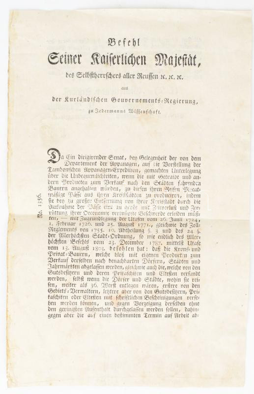 1804 Kurzeme (Kurland) Lettország kormányzóság gazdálkodási ügyekben. ... https://www.darabanth.com/de/510-Fernauktion/510.0/Kunst-Dokumente-andere-Sammelgebiete/Drucksachen~821/1804-Kurzeme-Kurland-3Cem3ELettorszag-3Cem3Ekormanyzosag-gazdalkodasi-ugyekben-Level-3-p~II3351919