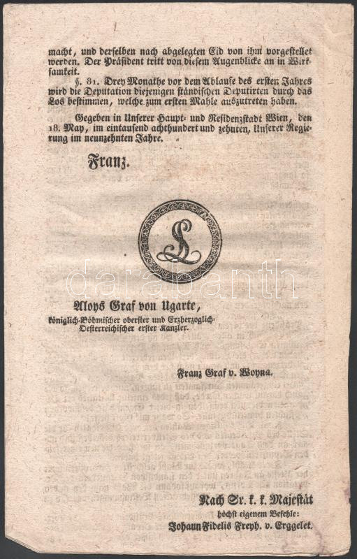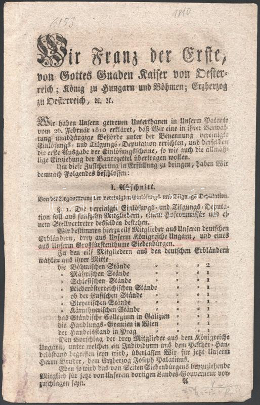 1810 I. Ferenc nyomtatott rendelete, 12p https://www.darabanth.com/de/510-Fernauktion/510.0/Kunst-Dokumente-andere-Sammelgebiete/Drucksachen~821/1810-I-Ferenc-nyomtatott-rendelete-12p~II3453329