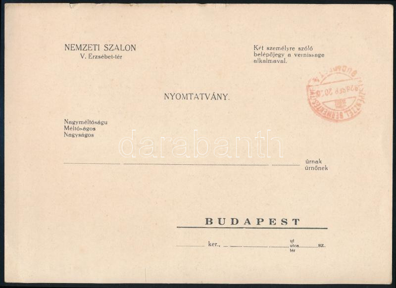 1923 Meghívó a Nemzeti Szalon őszi tárlatára, Lenhard Alice vernissage... https://www.darabanth.com/de/510-Fernauktion/510.0/Kunst-Dokumente-andere-Sammelgebiete/Drucksachen~821/1923-Meghivo-a-Nemzeti-Szalon-oszi-tarlatara-Lenhard-Alice-vernissageara~II3449564