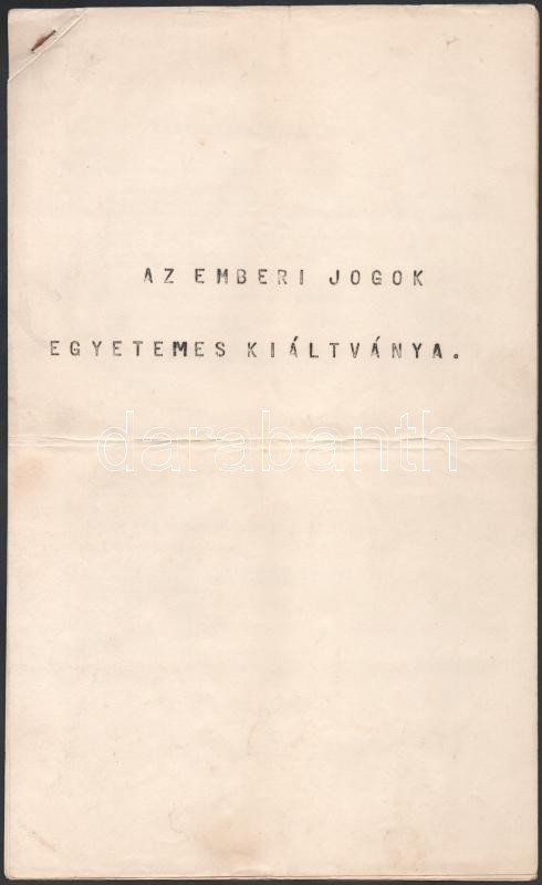 1954 Az Emberi Jogok Egyetemes Kiáltványa magyar kiadás a budapesti am... https://www.darabanth.com/de/510-Fernauktion/510.0/Kunst-Dokumente-andere-Sammelgebiete/Drucksachen~821/1954-Az-Emberi-Jogok-Egyetemes-Kialtvanya-magyar-kiadas-a-budapesti-amerikai-nagykovetseg-kiadC3~II3445525