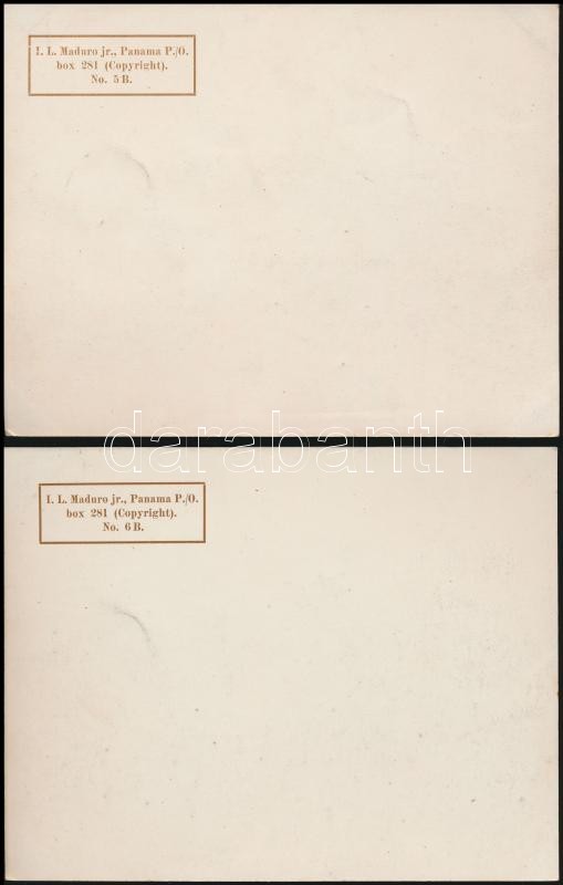 cca 1890 Pedro Miguel, Panama-csatorna építése, munkások, gőzmozdony, vasútépítés, 3 db fénynyomat, hátoldalán feliratozva, 13,5x17,5 cm / Panama Canal zone, the Canal Cut, Spanish and Italian workers, machine shops, locomotive, railway, 13,5x17,5 cm