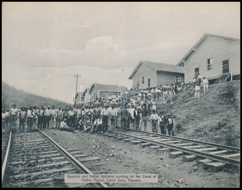 cca 1890 Pedro Miguel, Panama-csatorna építése, munkások, gőzmozdony, ...