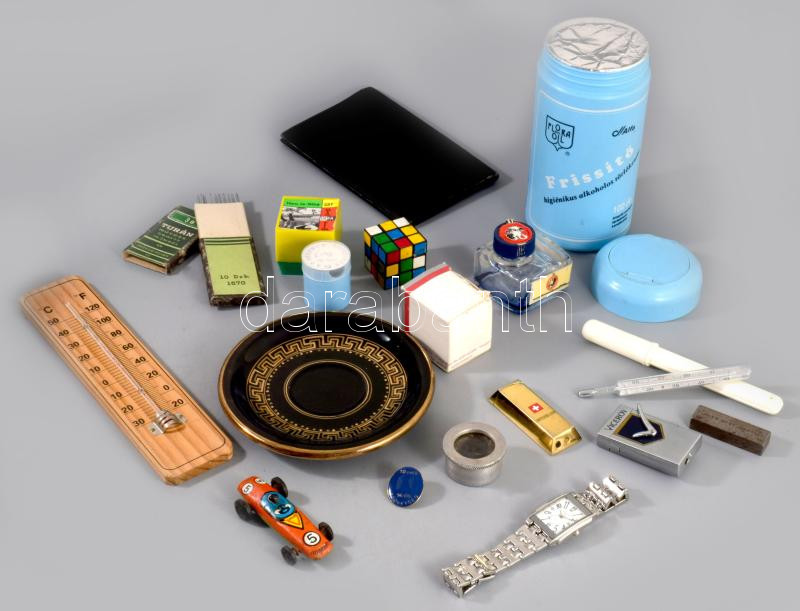 Vegyes bolha tétel, közte hőmérő, öngyújtó, tintás üveg, játékautó, st... https://www.darabanth.com/de/510-Fernauktion/510.0/Kunst-Dokumente-andere-Sammelgebiete/Flohmarkt~795/Vegyes-bolha-tetel-kozte-homero-ongyujto-tintas-uveg-jatekauto-stb~II3445107