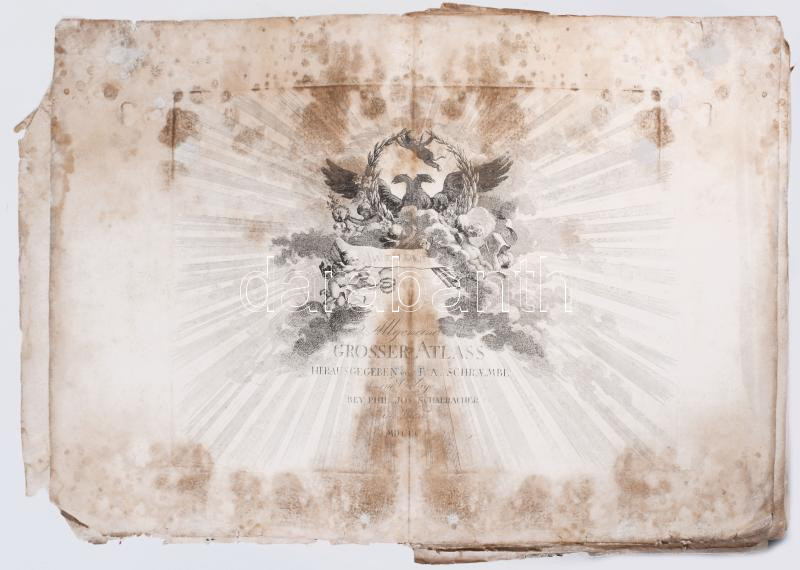 Beschreibung: 1800 Schraembl, Franz Anton: Allgemeiner Grosser Schämblischer Atlass. Wien, 1800, Joseph Philipp Schalbacher, 6 sztl. lev.+22 t. Sérült, megviselt állapotban, foltos, közte penészes lapokkal is! Restaurálásra szorul! Lapok összehajtva: 54x39 cm