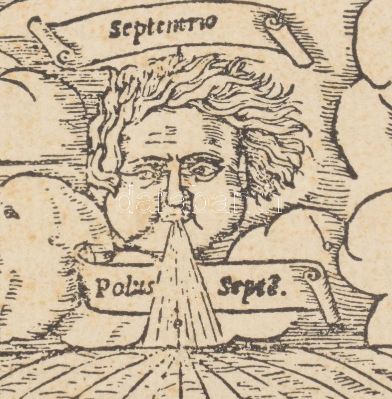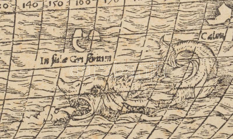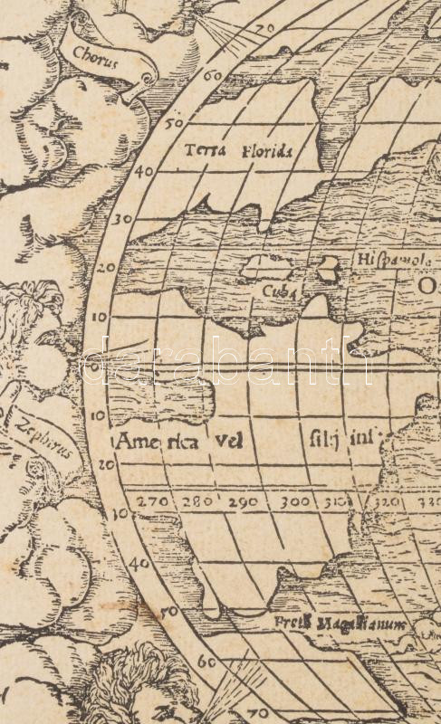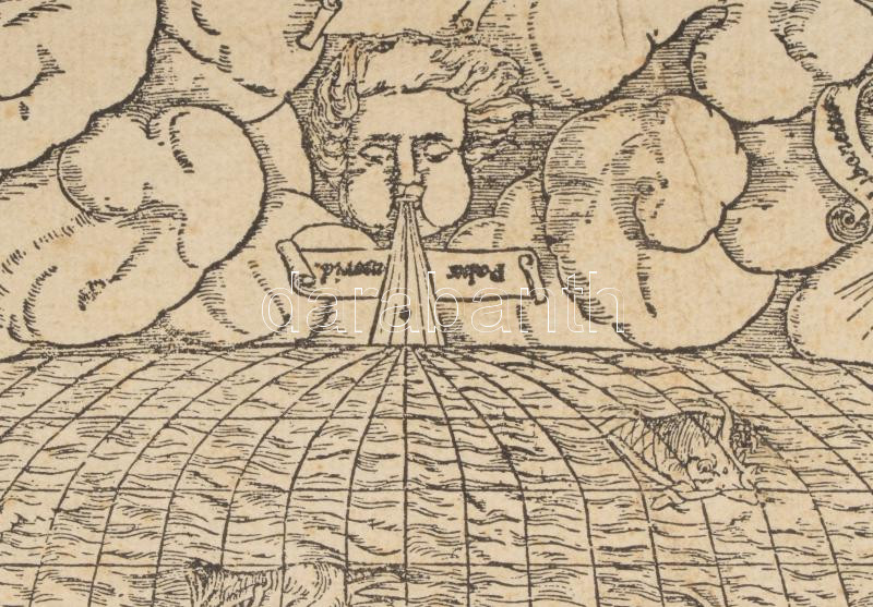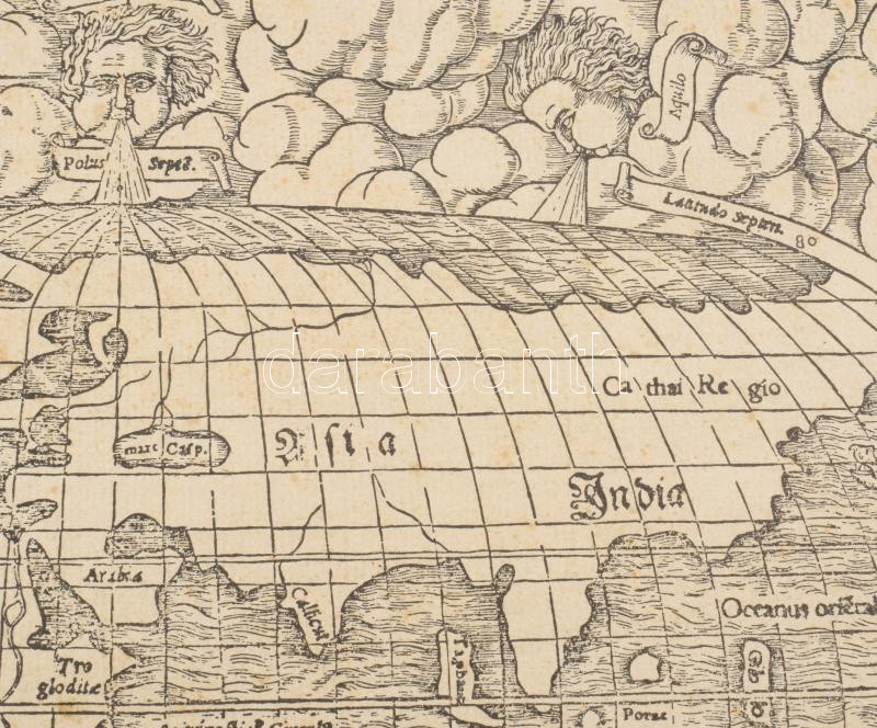 Figura del Mondo Universale 1550. feliratos világtérkép Sebastian Münster után. Régi papírra készült modern nyomás 380x280 mm Restaurált szélén beszakadással