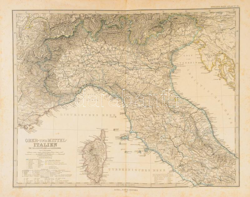 [Olaszország térképe] Petermann, A.: Ober- und Mittel-Italien im Maassstabe von 1:1.850.000. - Von A. Petermann.