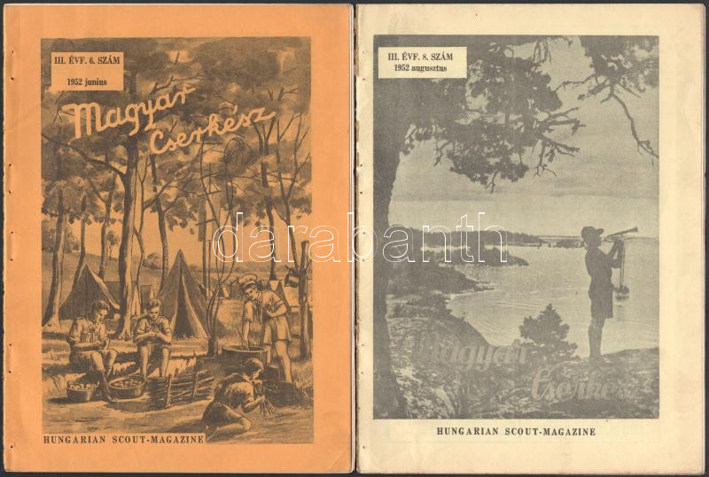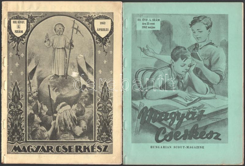 1952 A Magyar Cserkész emigráns kiadású folyóirat 4 db száma (III. évf... https://www.darabanth.com/de/510-Fernauktion/510.0/Kunst-Dokumente-andere-Sammelgebiete/Pfadfinder~811/1952-A-Magyar-Cserkesz-emigrans-kiadasu-folyoirat-4-db-szama-III-evf-4-5-6-8-sz-~II3451293