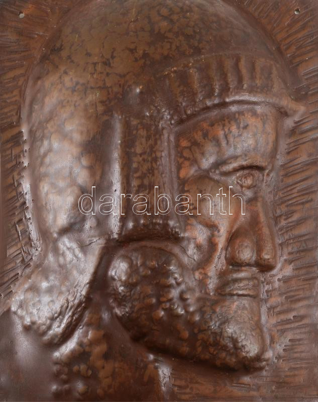 Beschreibung: Ismeretlen szobrász: Harcos. Repoussé domborított rézlemez kép, 31x26 cm
