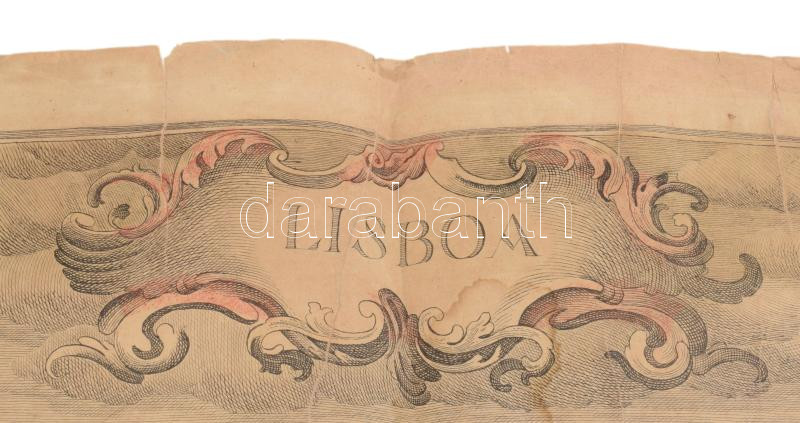 [Lisszabon látképe a nagy földrengés előtt]. Lisboa. Színezett rézmetszet, a nevezetes épületek megjelölésével. Szélein szakadásokkal. Ca 1750. / Copper plate engraving with coat of arms. 49x36 cm