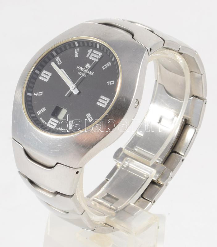 Junghans Mega karóra, rádióállításos, kvarc, fém szíjjal, d: 4 cm https://www.darabanth.com/de/510-Fernauktion/510.0/Kunst-Dokumente-andere-Sammelgebiete/Uhren~792/Junghans-Mega-karora-radioallitasos-kvarc-fem-szijjal-d-4-cm~II3449173