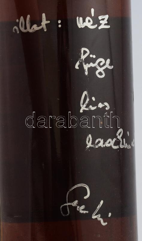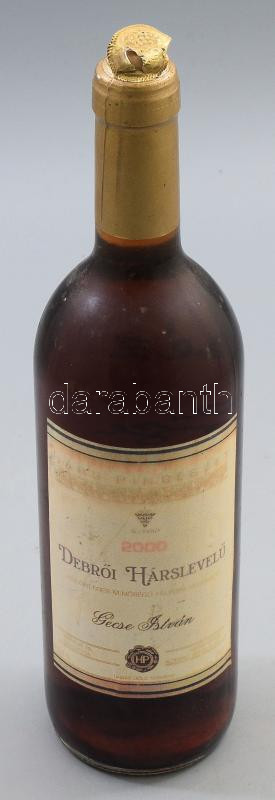 Beschreibung: 2000 Hárs Pincészet Debrői Hárslevelű, Gecse István (hátoldalán aláírásával), bontatlan palack fehérbor, ázott címkével, a borítás a dugóról lejött, 13,4%, 0,75l