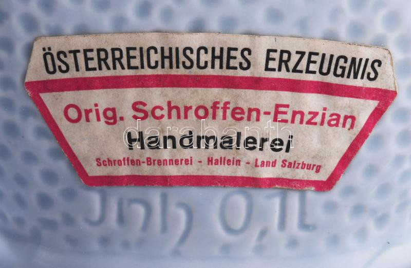 Original Schroffen Enzian osztrák likőr, porcelán flaskában, bontatlan... https://www.darabanth.com/de/510-Fernauktion/510.0/Kunst-Dokumente-andere-Sammelgebiete/Vintage-Weine-Getranke~1106/Original-Schroffen-Enzian-osztrak-likor-porcelan-flaskaban-bontatlan-m-14-cm~II3448959