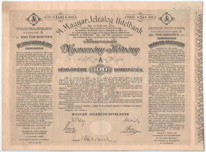 1906. Budapest "A Magyar Jelzálog-Hitelbank Nyeremény-Kötvénye&qu... https://www.darabanth.com/de/510-Fernauktion/510.0/Numismatik/Aktien-und-Tickets~689/1906-Budapest-A-Magyar-Jelzalog-Hitelbank-Nyeremeny-Kotvenye-A-4x-reszkotveny-100K-ro~II2972420
