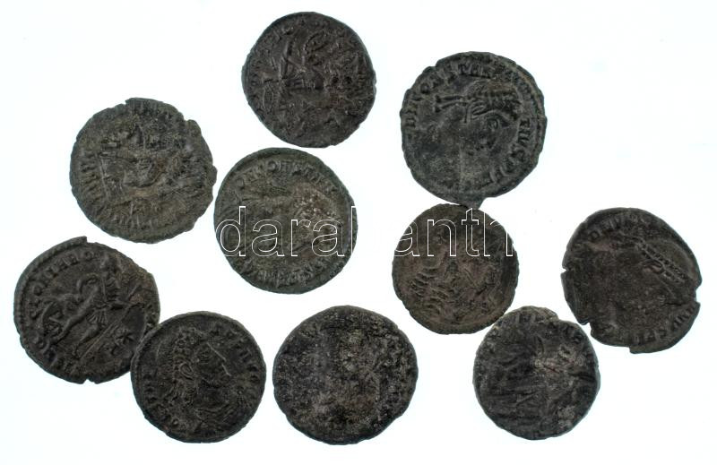 Beschreibung: Római Birodalom vegyes III-IV. század 10db-os bronz érmetétel T:vegyes