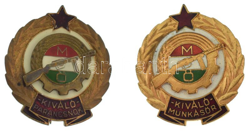 1965. "Kiváló Parancsnok" műgyantás fém kitüntető jelvény + "Kiváló Munkásőr" aranyozott műgyantás fém kitüntető jelvény T:AU