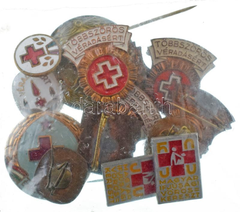 Vegyes, 14db-os Magyar Vöröskereszt / véradás tematikájú jelvény / kitűző tétel T:AU-VF
