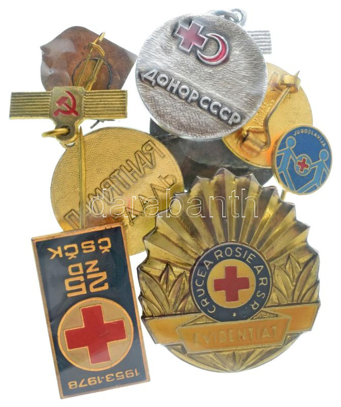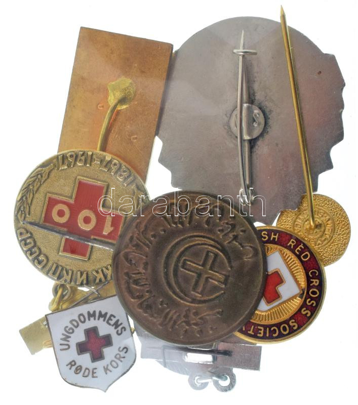 Vegyes, 8db-os külföldi "Vöröskereszt" jelvény tétel, közte Szovjet, Norvégia, Jugoszlávia, Törökország, stb. aranyozott / műgyantás / zománcozott fém jelvények, közte egy "Vörös Félhold" bronz kitűző T:AU,XF