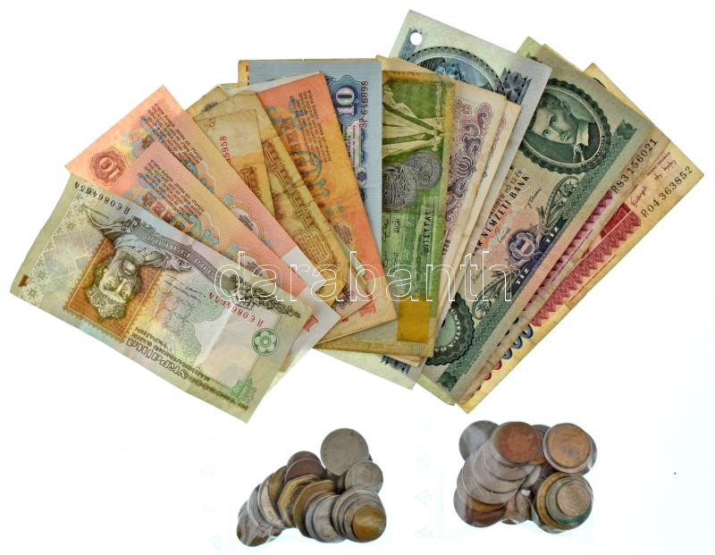 Beschreibung: Vegyes, 25db-os bankjegy tétel, (ebből 2db magyar, amiből az egyik rongált), közte Szovjetunió 1961. 10R (2x) sorszámkövetők "8679969 - 8679970" + 60db vegyes külföldi érme T:vegyes