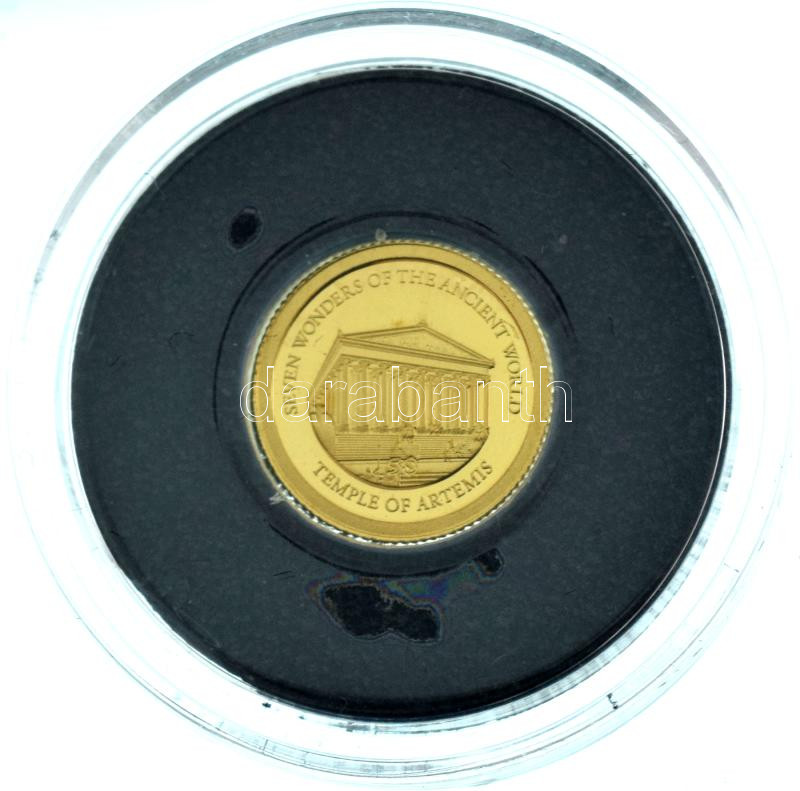Salamon Szigetek 2013. 1$ Au "Az ókori világ 7 csodája - Artemisz temploma", "A világ legkisebb arany érméi" kapszulában, tanúsítvánnyal (0,5g/0,585) T:PP