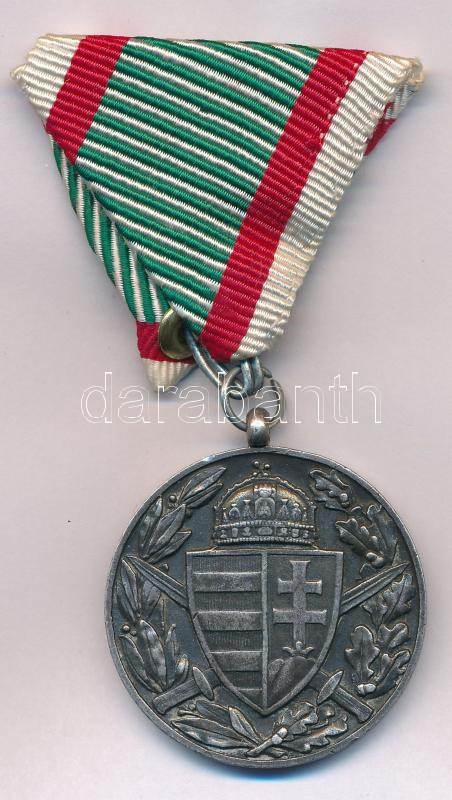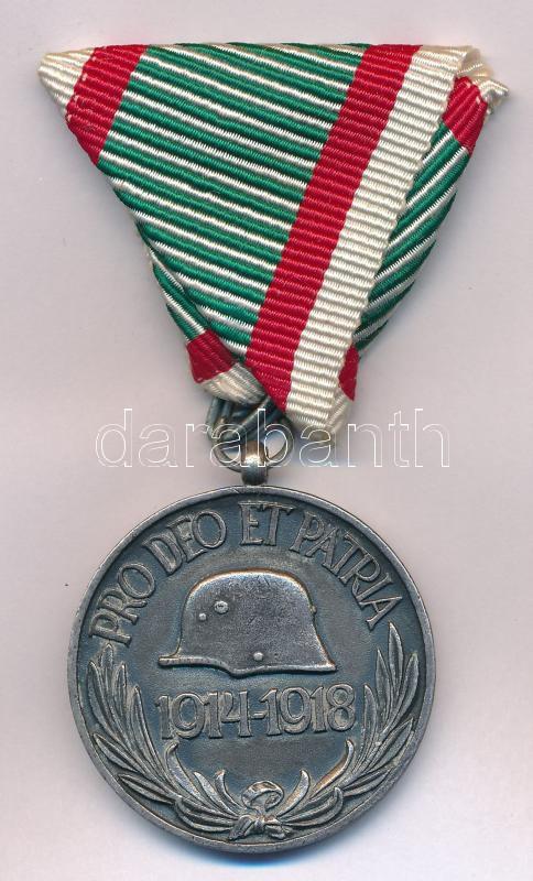 Hungary 1929. "Hungarian Commemorative War Medal with swords and a helmet" silver plated bronze decoration with modern ribbon with "BRONZ" hallmark on edge C:XF