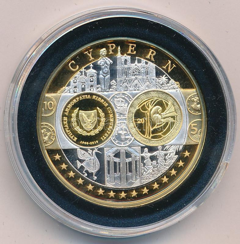 2002-2010 k. "Emlékérem az euróövezet országainak közös valutájáról - Ciprus" aranyozott, ezüstözött Cu-Ni emlékérem kapszulában, tanúsítvánnyal (35mm) T:PP