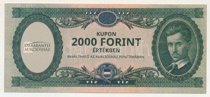 2023. "Darabanth Aukciósház" 2000Ft értékű, sorszámozott &qu... https://www.darabanth.com/de/510-Fernauktion/510.0/Numismatik/Notgeld-aus-Papier-und-Metall~690/2023-Darabanth-Aukcioshaz-2000Ft-erteku-sorszamozott-00091-kuponja-TUNC~II3454270
