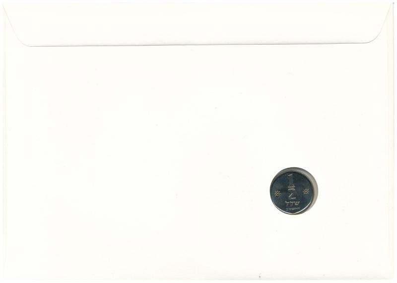 Israel 1982. 1/2 Sheqel Cu-Ni in envelope with stamp and cancellation C:UNC