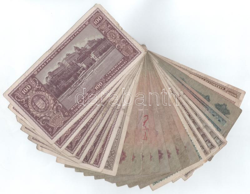 Beschreibung: 1930-1946. 20P - 1.000.000MP (8xklf, 24db), közte 1946. 100.000.000P "P 320 000256" T:VG