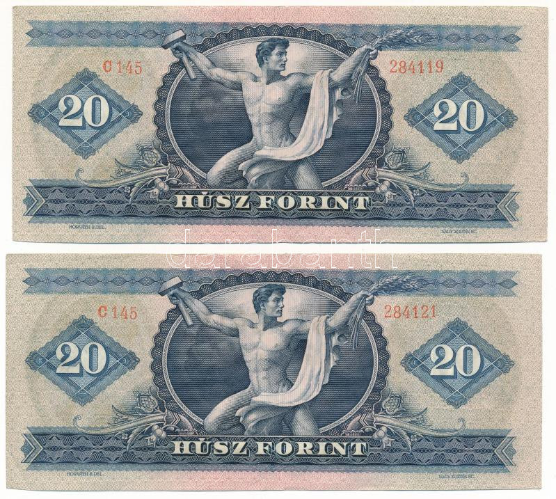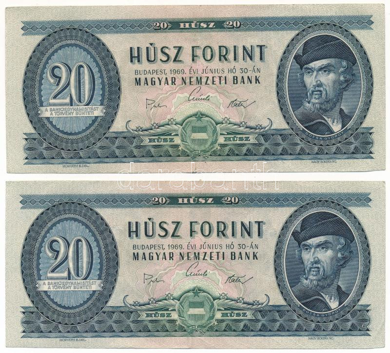 Beschreibung: 1969. 20Ft (2x) közeli sorszám "C 145 284119, C 145 284121" T:F szép papír
