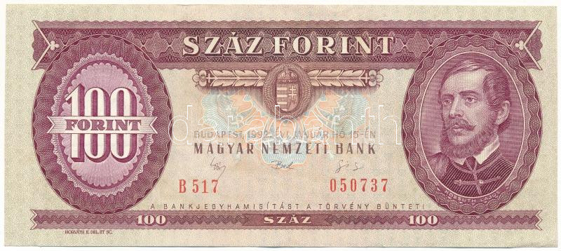Beschreibung: 1992. 100Ft "B 517 050737" T:F szép papír