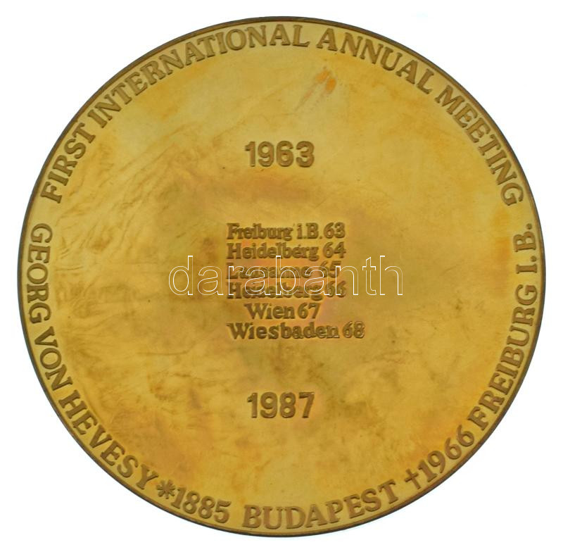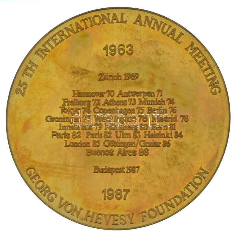 1987. "25. Nemzetközi Találkozó - Hevesy György Alapítvány" kétoldalas, angol nyelvű bronz emlékérem (80mm) T:AU